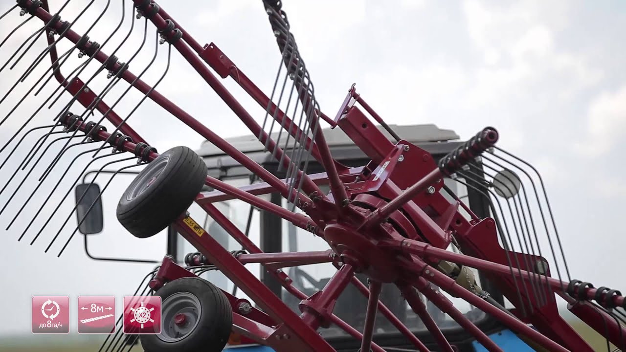 Импортный редуктор ротора дает гарантию долговечной качественной работы грабель. Конструкция крепления роторов позволяет оптимально копировать рельеф поля в продольном и поперечном направлениях, при этом оптимально выдерживается рабочая высота подбирающих пальцев. Это приводит к сокращению потерь и минимальному загрязнению корма.